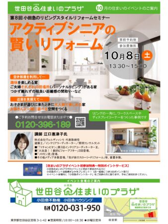 「アクテイブシニアの賢いリフォーム」をテーマに 小田急のリビングスタイルリフォームセミナー講師を務めさせて頂きます。   箱(家)のカタチもいろいろありますが、さらに様々なのは暮らし方や価値観・・生き方 シニア世代のリフォームはその方の人生そのものが形になるのかもしれません。 ちょっと大げさでしょうか? でもそんな気持ちで取り組みましょう! アクティブシニアの賢いリフォーム!