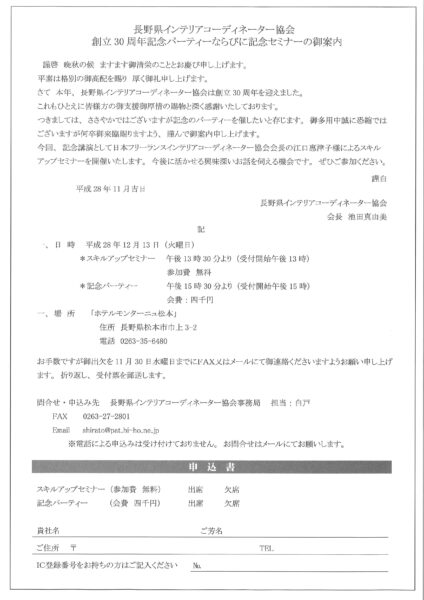 長野県インテリアコーディネーター協会創立30周年特別記念講演(スキルアップセミナー)において