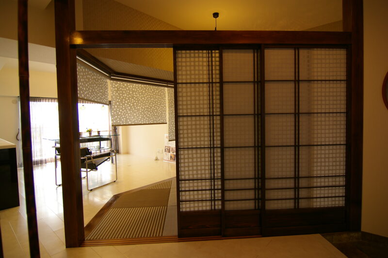 共に日本の代表選手、和紙のスクリーン、障子とも相まって、、、マンションの一角です。
