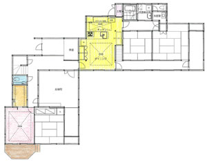 増改築を繰り返し、家族のよりどころが分散してしまっている現状。 真ん中のキッチンを対面にして庭を愛でる気持ちのいい場所に。。。