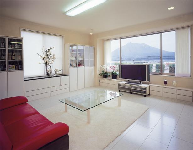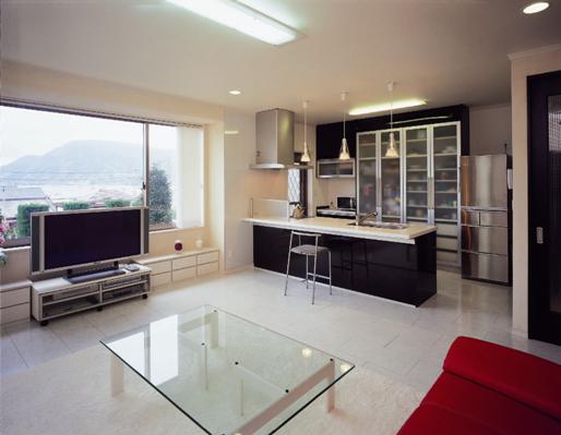 こだわりを活かす。生活動線を整理する。 キッチンリビングを寛ぎの場とし景色を日常に取り込む。