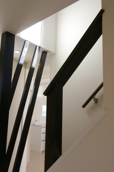 玄関ホールからLDKへの間仕切りは、透明ガラスの吊戸を使用。玄関ホールへは光が漏れ明るくなり、LDKへのつながりが生まれました。